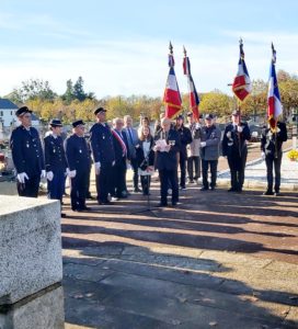 Ce 11 Novembre, une nombreuse assistance. Après la dépose d’une gerbe de fleurs au monument aux morts par le président de l’association UNC, lecture de la lettre du ministre par le maire délégué