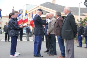 Au cimetière, lever des couleurs, dépôt de gerbes, allocution de madame la maire et de la sénatrice Karine Daniel puis les participants ont pris la direction de la salle Ringeard pour une remise de médaille : Jacky Fonteneau pour la croix du combattant, Michel Blanchard pour la médaille du mérite UNC et la croix d’Agadez à Henriette Deschamps.