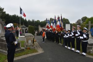 Ensuite en cortège les jeunes accompagnés des présidents et des maires se sont dirigés vers le « carré militaire » pour déposer cet emblème avec ces mots :